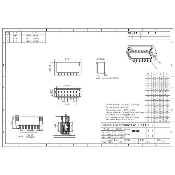 AB Dalee Wafer 1.0mm Pitch PIN=2-20 Right Angle SMT Wire to Board Connectors
